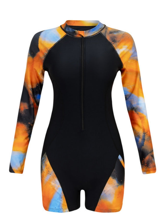 Women’s Long Sleeve One-Piece Zipper Swimsuit – Sun Protection Surfing & Beachwear